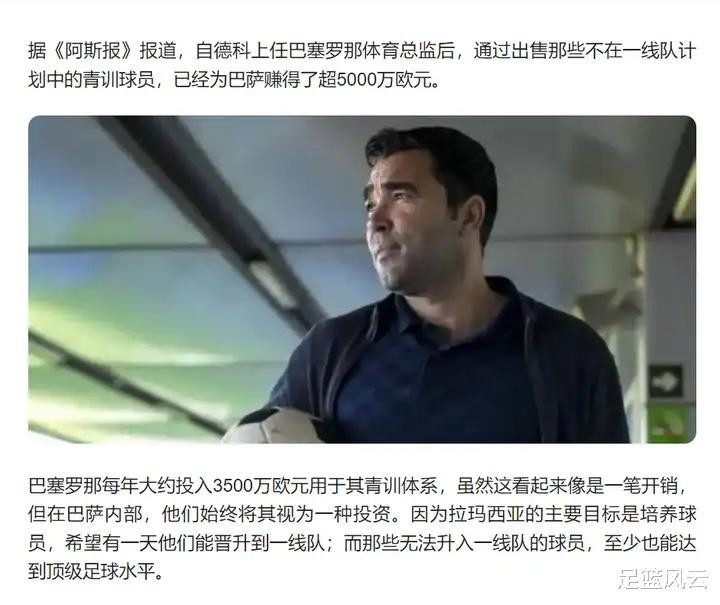 像巴萨的体育总监德科,担任球队要职以后通过培养年轻球员,出售的费用是赚了将近有5000万欧元的收入。