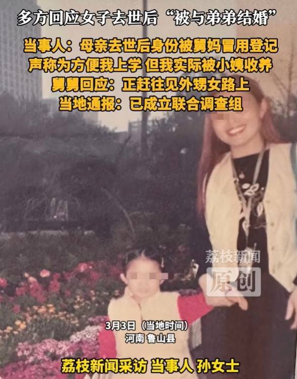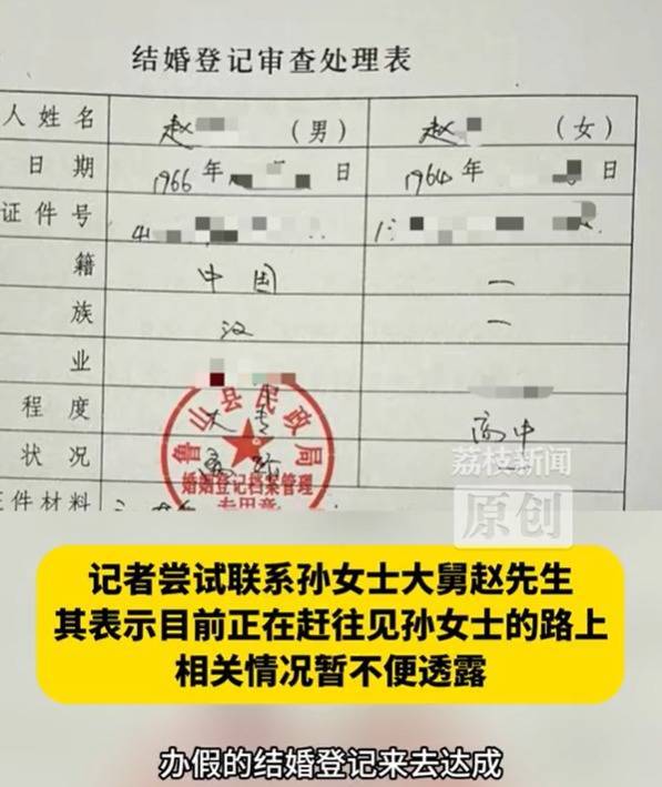 直到2018年,19岁的孙女士提出继承母亲遗产,在进行相关公证手续时,孙女士被告知母亲有其他婚姻记录,无法证明孙女士为独女,故无法办理,这令孙女士感到疑惑。直到几个月前,孙女士从母亲户籍档案所在地查询到相关结婚登记记录,发现照片上的人是大舅妈,结婚登记时间为2009年12月,即其母亲离世后一年。同时母亲的身份证照片也被替换成了大舅妈。孙女士就此情况向其亲属询问,被告知当时这一做法是为了解决孙女士的上学手续。但孙女士称自己一直随小姨一家生活,相关说法无法令其信服。记者尝试联系孙女士舅舅赵先生,其表示目前正在赶往见孙女士的路上,相关情况暂不便透露。