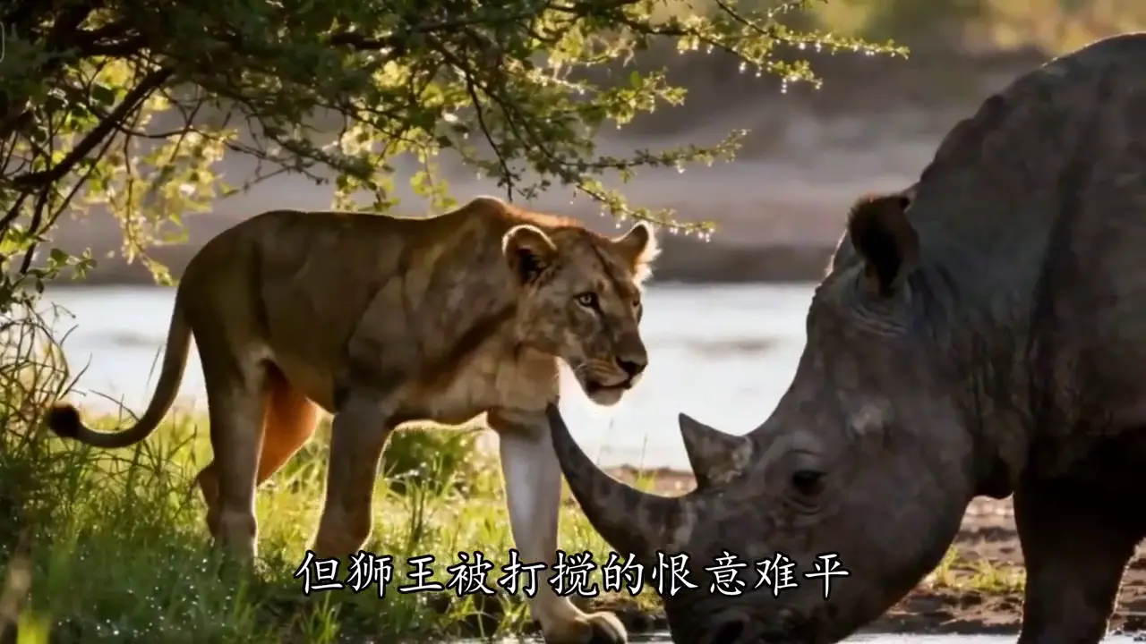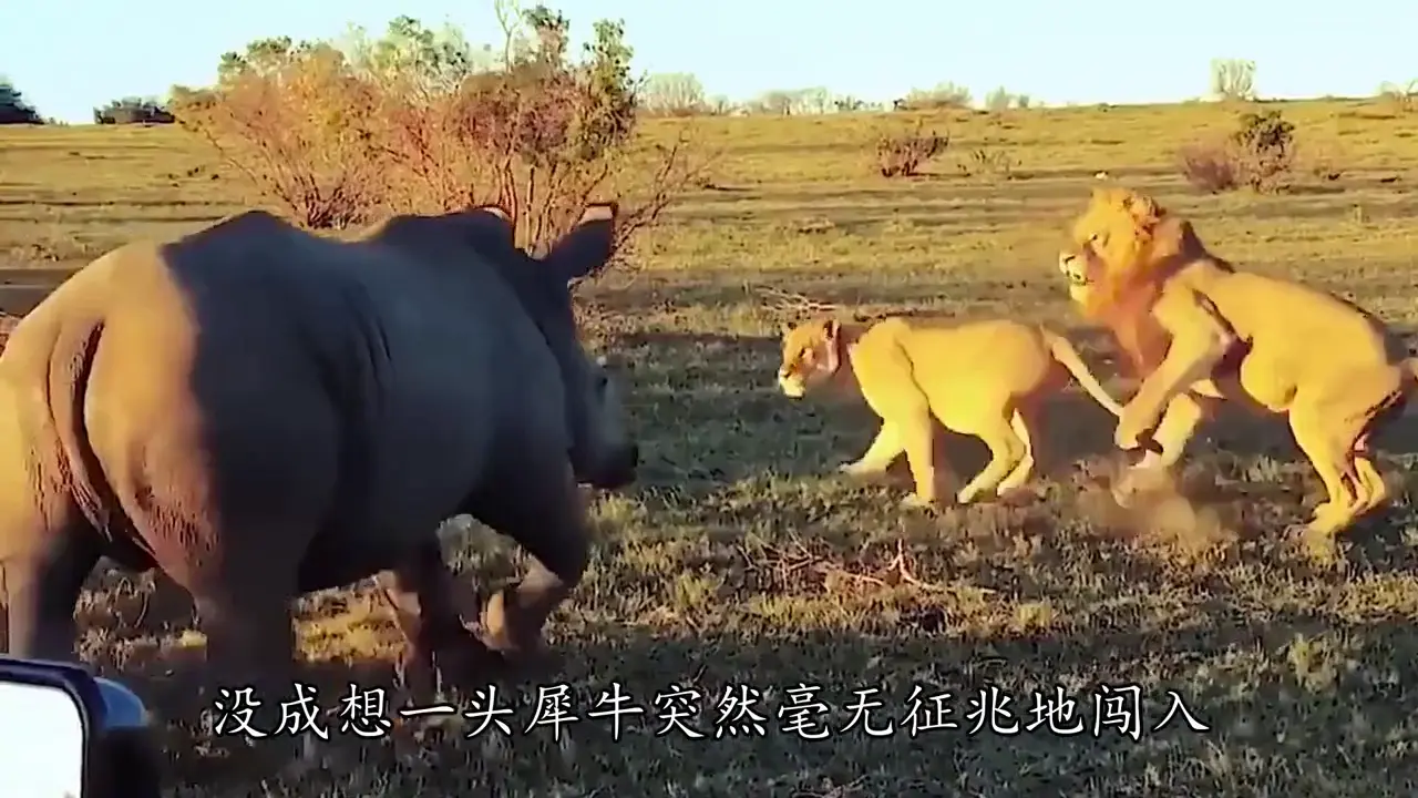 狮王夫妇正依偎着亲密互动,没成想一头犀牛突然毫无征兆地闯入,硬生生搅乱了这份温存。狮王顿时怒不可遏,心里的火气直往上冒。等犀牛优哉游哉在草地上溜达时,咽不下这口气的狮王立刻召集手下的小弟,气势汹汹地对犀牛展开围追堵截。