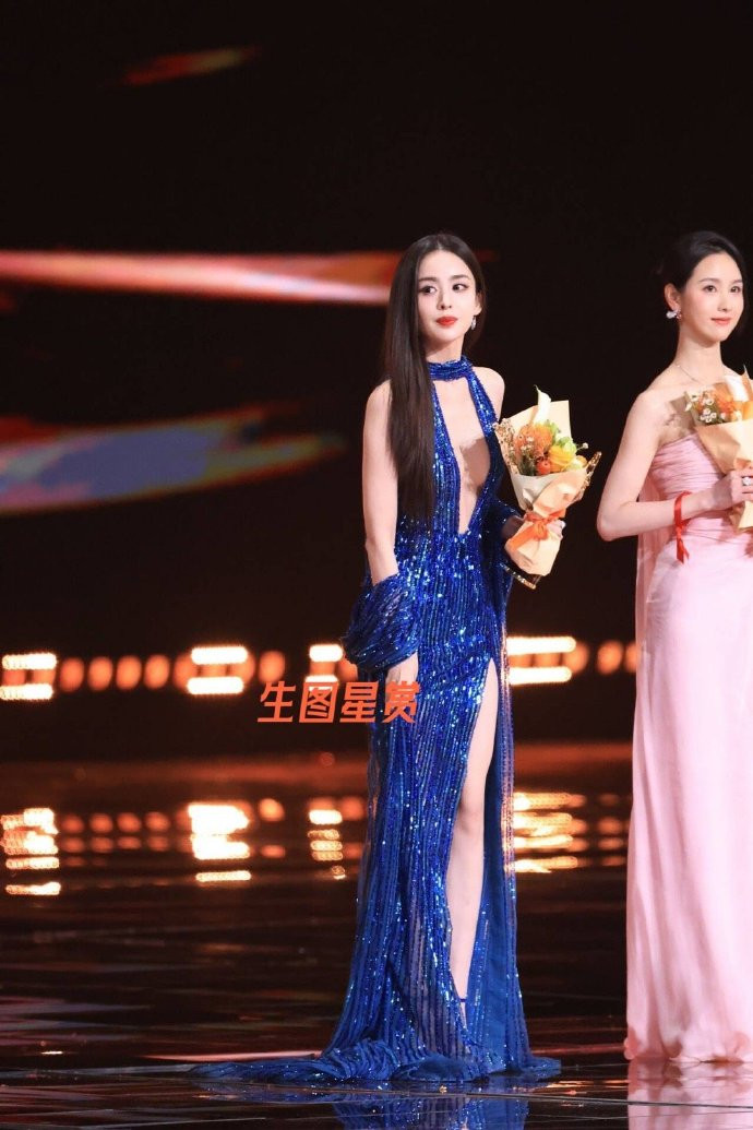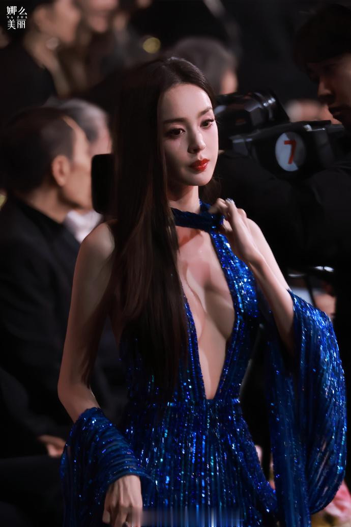 微博之夜的娜扎,一袭星空蓝亮片高开衩长裙清凉又狂野。