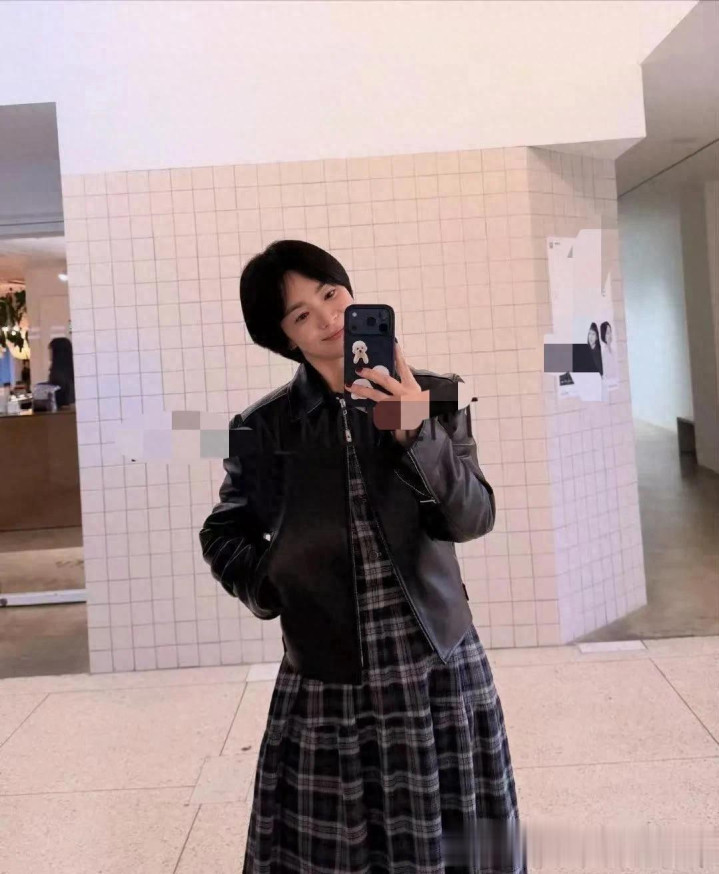 股票配资平台官网宋慧乔私服穿搭真时髦! 短皮衣+格纹裙, 洋气又高级!